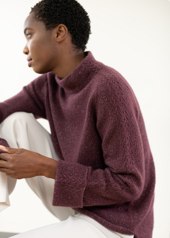 Женский пуловер с простым узором на рукаве, вязаный спицами из микса шелка, мериноса и кашемира.
