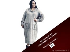 Описание на размеры S/M/L/XL с шириной изделия 50/55/60/65 см, плотность вязания 14 петель спицами 7 мм.
