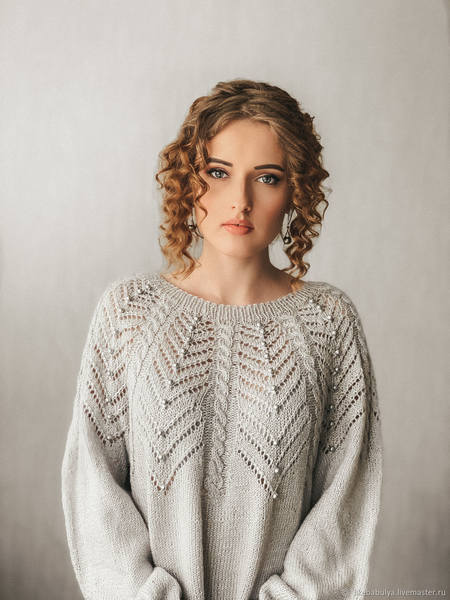 Стильный, необычный, фактурный свитер с круглой кокеткой. Модель свитера предполагает свободное облегание. Связан по кругу сверху вниз бесшовно. Дополнительно мы предложили вам вариант вязания свитера раздельными частями.