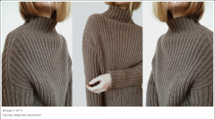 Свитер резинкой свободно струится вдоль тела, даже если это свитер оверсайз, такой свитер 'мешком' висеть не заставить.