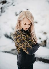 Свитер вяжется сверху вниз, без швов, круговыми рядами. Чтобы избежать стягивания при работе с жаккардовым узором работой, важно делать протяжки на изнаночной стороне работы немного свободными.