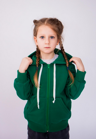 Трикотажная кофта на молнии с двойным одношовным капюшоном.
