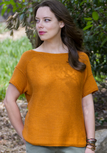 Выполняется одной деталью поперек прямыми и обратными рядами. Широкий вырез горловины и оригинальное формирование плеча обеспечивают идеальный комфорт. Топ можно связать из хлопка и льна.
