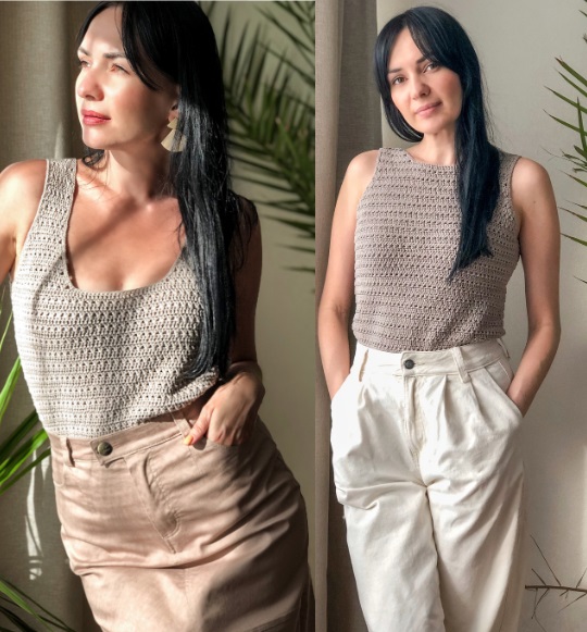- Описание очень подробное, содержит пошаговое описание всех этапов вязания топа