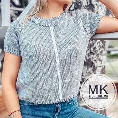 - подробное описание вязания футболки с ростком, регланом сверху в пяти размерах (XS, S, M, L, XL);