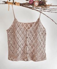 Подробное описание на ажурный топ крючком. Описание привязано к плотности вязания, а также есть алгоритм расчетов и инструкция по вязанию топа по индивидуальным меркам. Даны 2 варианта узора ромбы и 2 варианта вязания лямок.