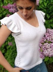 Сегодня выход в продажу описания по этому топу. Оно попетельное, нужно попасть в плотность. Представлена широкая линейка размеров от XS до 2XL.