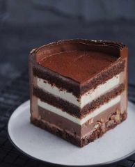 Кофейный бисквит, карамелизированные орехи, кофейный ганаш с ликером, кокосовое кремю, сливочный мусс с ликером, крем-чиз и ганаш.