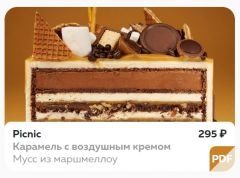 Хруст вафли, дутый воздушный рис, тягучая мягкая карамель, грецкие орешки, молочный шоколад и даже изюм! Заливается всё это мягкой фирменной карамелью и дополняется сливочно-сырным кремом.