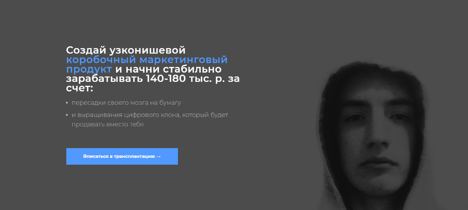 Если ты еще НЕ МАРКЕТОЛОГ - я покажу тебе, как преподносить это как КОНКУРЕНТНОЕ ПРЕИМУЩЕСТВО для клиентов… да и тебе реально в какой-то мере будет легче, чем спецам-маркетологам… Яркий пример: мой друг, который к маркетингу не имел никакого отношения, но мы снимали одну хату… и буквально за 2 месяца, он используя мои наработки, повторяя за мной шаг за шагом вышел на стабильные 100-150к. Было даже 230… Мне было радостно… и… немного обидно… всмысле? Я потратил 5 лет, а он залетел и делает похожие цифры. В маркетинге он до сих пор не разобрался… Это ему и не нужно. Он делает кэш. А что еще нужно? Трансплантация поможет тебе получить схожие результаты.