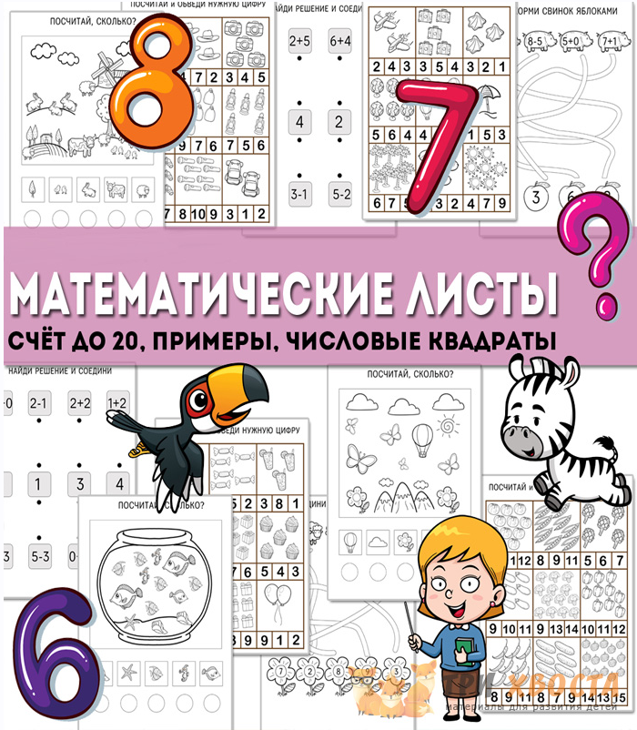 Комплект заданий Математические листы - тренируем навыки счета с веселыми заданиями для ч/б принтера! Удобные рабочие листы содержат разнообразные задания для развития навыков сопоставления цифры и количества предметов разного уровня сложности.