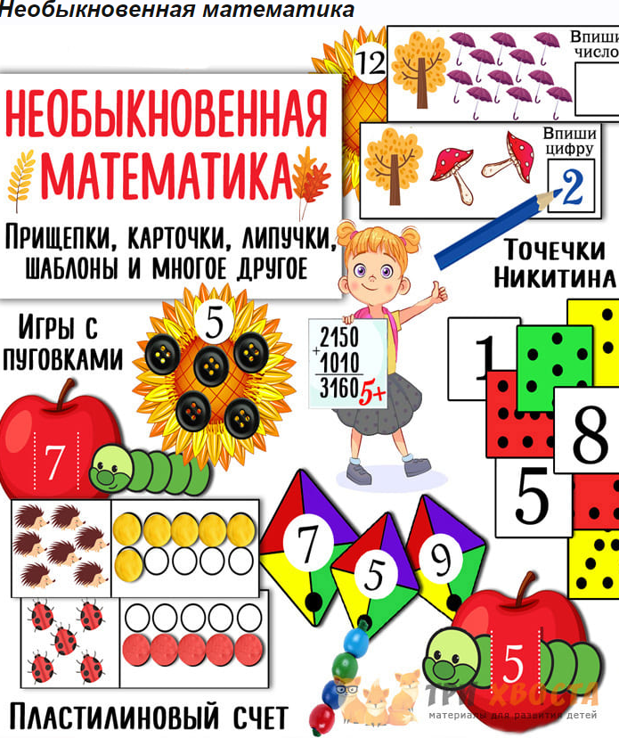 Комплект заданий Необыкновенная математика - огромный новый комплект математических заданий! Множество разнообразных игр на освоение и автоматизацию счета, пособие по методике Никитина «Интеллектуальные игры». Задания подойдут для работы в детском саду, различных детских центрах, а также для самостоятельного домашнего творчества.