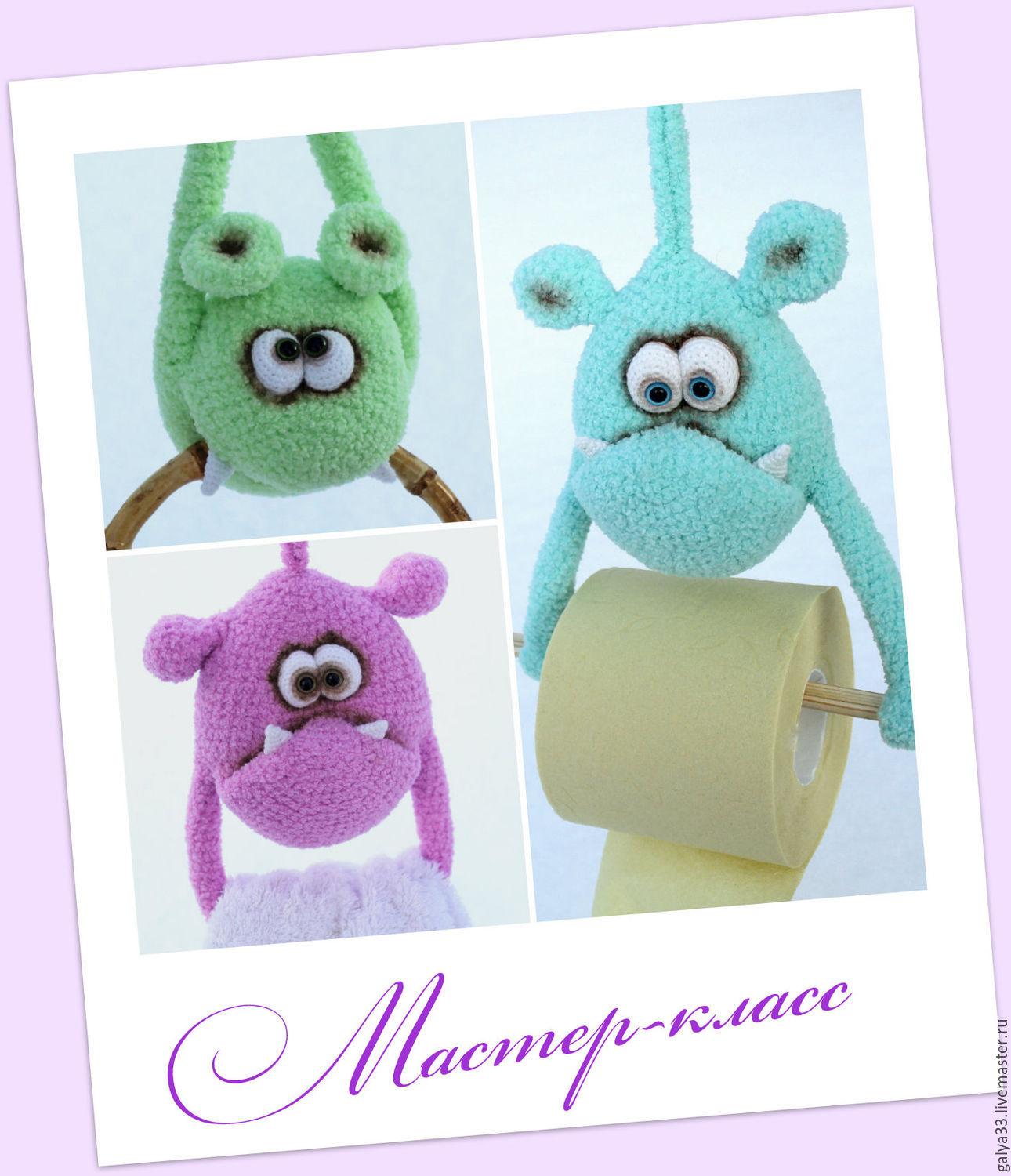 Туалетные монстрики могут использоваться как держатели полотенец или бумаги.