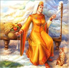 Матерь Пряха символизирует первородное женское начало всей жизни. Из первобытного хаоса вселенной она прядёт нить жизни, наматывает её на веретено…