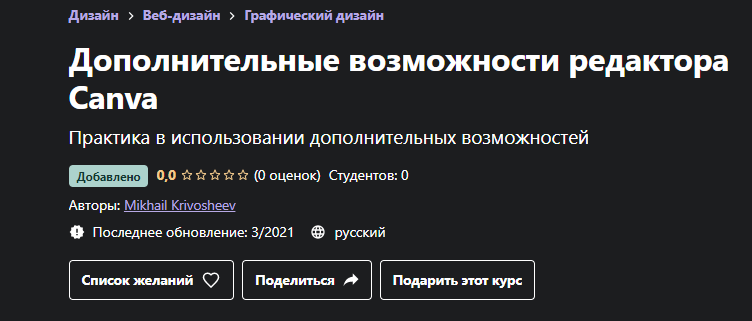 [Udemy] Дополнительные возможности редактора Canva (Mikhail Krivosheev)