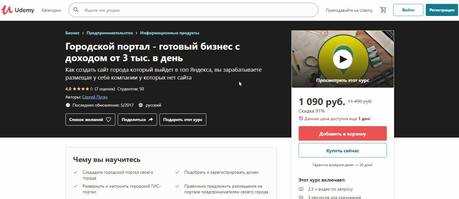 [Udemy] Городской портал - готовый бизнес с доходом от 3 тыс. в день (Сергей Пугач)
