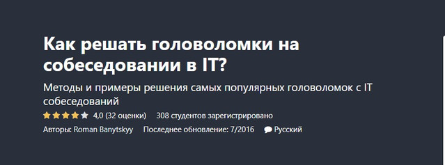 Этот курс создан для тех, кто будет проходить собеседование в IT-компанию, но он также будет полезным всем, кто интересуется логическими задачами и головоломками. В курсе рассматриваются самые популярные типы головоломок и наводятся методы их решений.