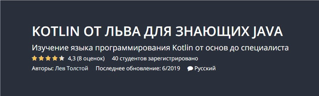 Данный курс предоставлен для полноценного изучения Kotlin, он подойдет как людям совершенно не знакомым с данным языком программирования, так и для тех кто уже с ним работал. Вы сможете полноценно изучить данную технологию, от самых азов до более продвинутых нюансов связаных с применением Kotlin. По окончанию данного курса Вы научитесь полноценно использовать Kotlin и сможете его применять в различных реальных проектах.
