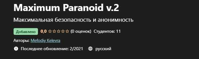 Курс для тех кто ценит свои безопасность и конфеденциальность на максимальном уровне.