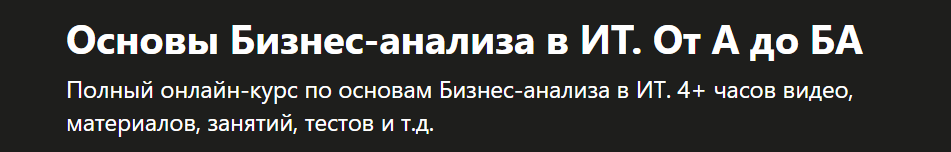 Полный онлайн-курс по основам Бизнес-анализа в ИТ. 4+ часов видео, материалов, занятий, тестов и т.д.
