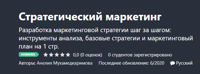 [Udemy] Стратегический маркетинг (Анелия Мухамедкаримова)