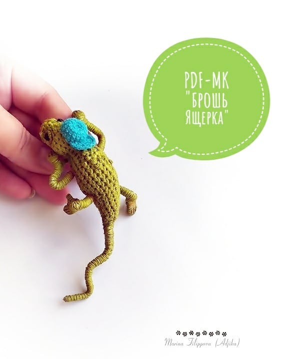 Специально разрабатывала схемку для миниатюрной ящерки. Тимати провязывался крючком 1.15 мм для подсчета рядов и петель, да и задача была – даже в таком варианте исполнения сохранить миниатюрность. Но если вы возьмете ирис и крючко 0.75 мм, получится настоящая милейшая крошечка, обаятельный малюпас!
