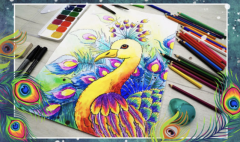Урок рисования для детей 9+ Важная птица Павлин (Юлия Арсентьева)