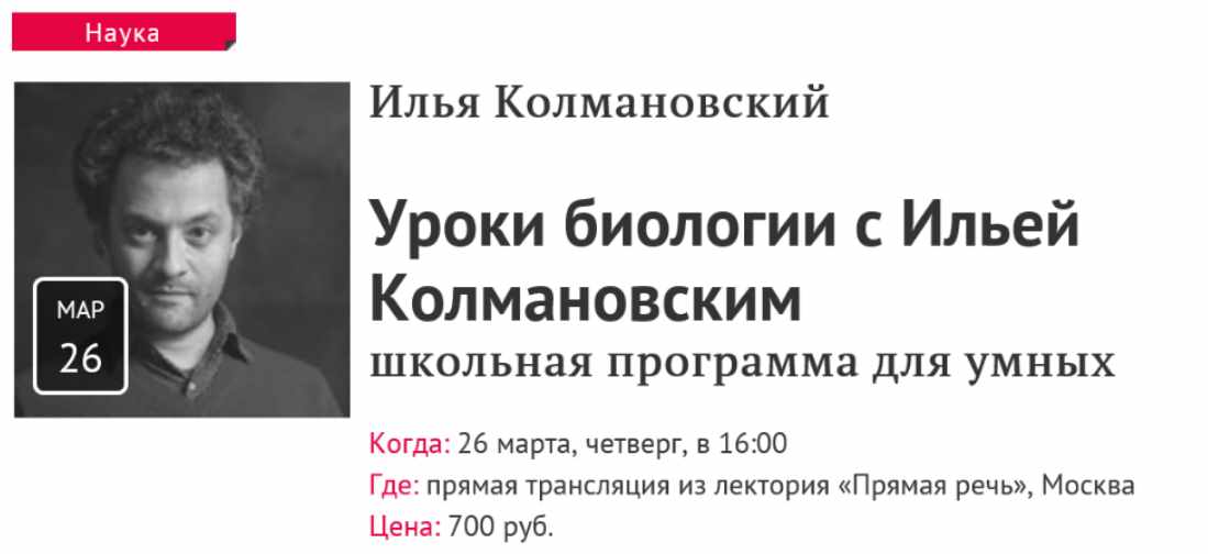 Илья Колмановский начинает курс занятий по биологии по расширенной школьной программе.