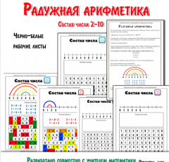 В комплекте представлены рабочие страницы на состав числа 2-10.