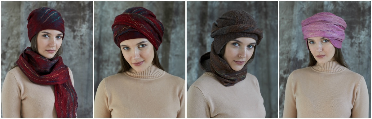 В курсе «Чалма-трансформер» рассмотрены способы валяния необычных головных уборов, которые можно трансформировать в комплект из шапочки-ушанки или шапочки-бинни и шарфа в разные варианты чалмы, тюрбана и даже тийона.