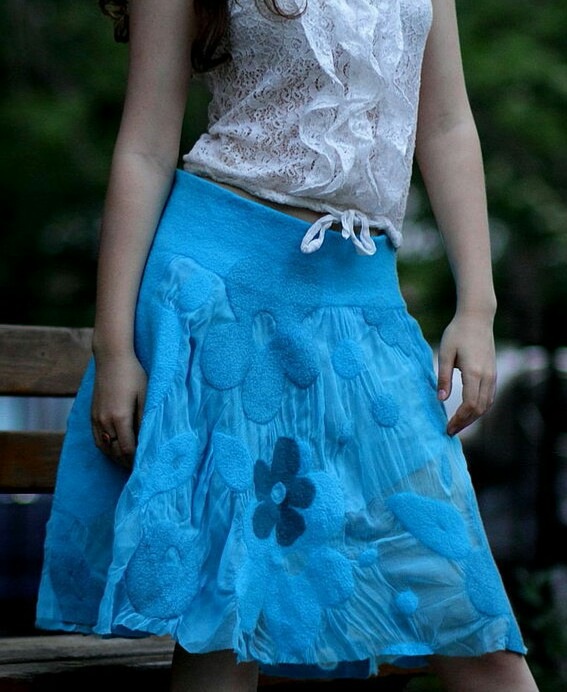 Предлагаю подробный пошаговый конспект для изготовления - валяния летней юбки из шифона и префельта.