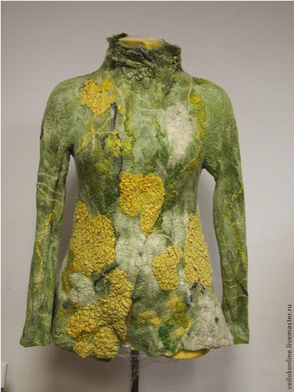Арт-жакет с многослойным декором из различных волокон, флиса и т.д. для создания декоративных, эффектных, фактурных, очень красивых поверхностей.
