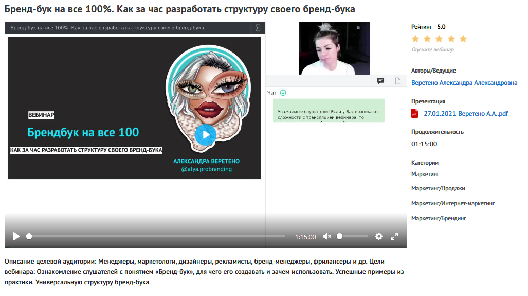 Вебинар 'Бренд-бук на все 100%. Как за час разработать структуру своего бренд-бука' (Александра Веретено)