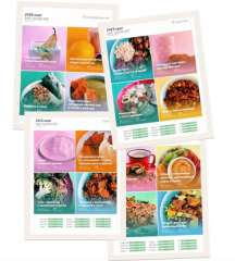 Каждый день 4 приема пищи, всего 28 не повторяющихся основных рецептов + напитки и смузи?Сбалансировано по всем питательным веществам