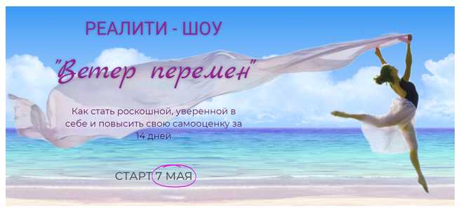 На реалити-шоу мы возрождаем любовь к себе. Каждый день у вас будет маленькое свидание — СВИДАНИЕ С СОБОЙ! И за 14 таких свиданий вы заново почувствуете вкус к жизни! Вспомните, что в вашей душе горит маленький огонек — ВНУТРЕННЕЕ СЧАСТЬЕ. Которое не зависит от обстоятельств и окружающих людей. Только от вас!