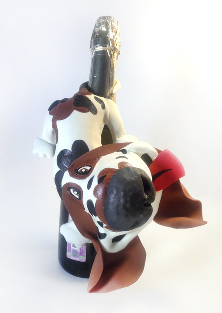 Очень легкая в работе игрушка, и интересный результат - такую собачку можно повесить на бутылку шампанского, на елку, на любой крючок. Можно украсить ею подарок, сделать большой магнит на холодильник, подарочную коробку, объемную открытку....