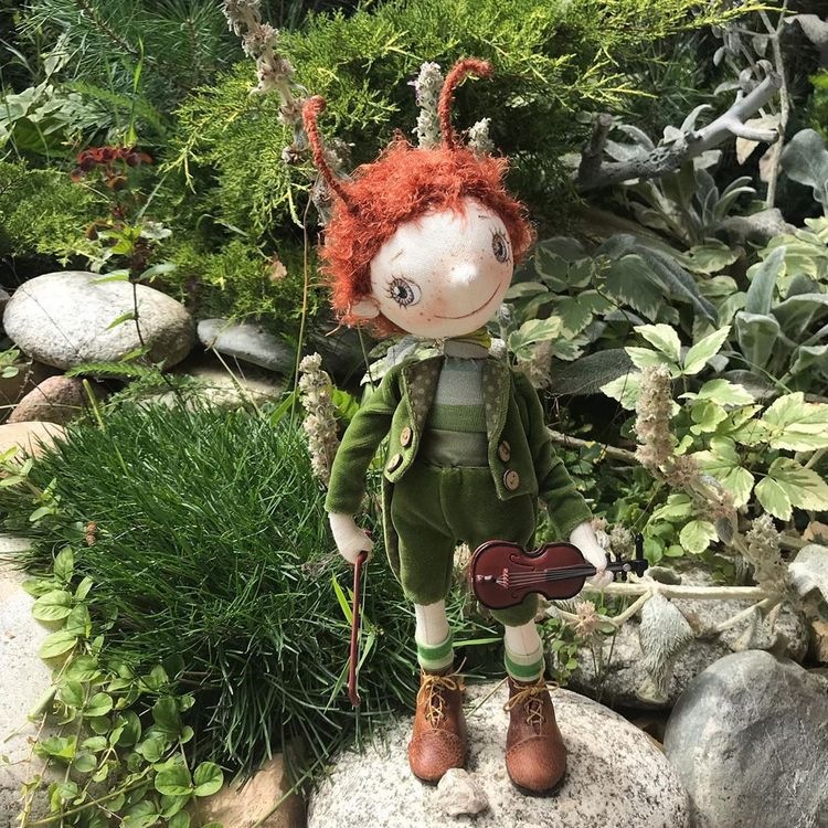 Полный пошаговый видеокурс , в результате получится Кузнечик - кукла на каркасе, около 40 см ростом, который умеет самостоятельно стоять. Выкройка куклы, одежды и обуви в натуральную величину