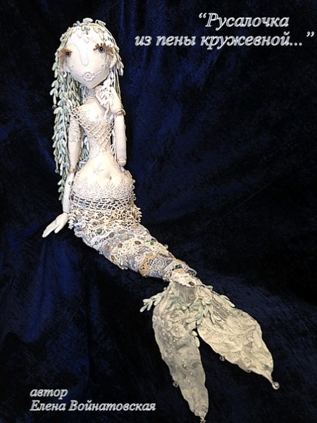полный пошаговый видеокурс создания куклы в технике кружевной аппликациив результате получится очаровательная Русалочка , с болтающимися ручками-хвостом, роскошной прической и пушистыми ресницами, большая - ростом около 60 см. Выкройка в натуральную величину прилагается