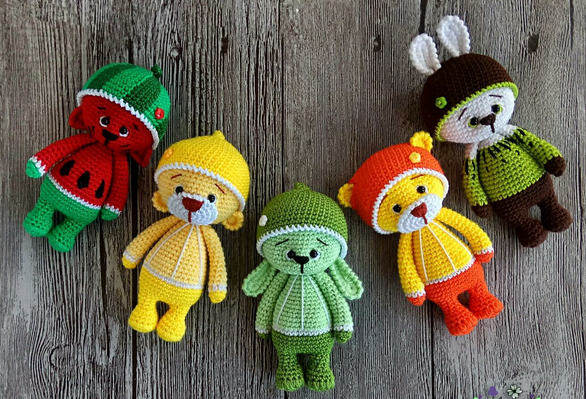 *Размер игрушек, при вязании пряжей указанной толщины около 12 см.