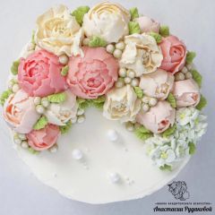 Видео урок «Пионы. Оформление торта кремовыми цветами в малазийской технике» (Анастасия Рудакова)