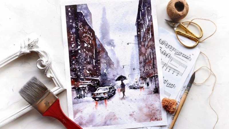 В этом видео уроке Анастасия приглашает вас в окунуться в атмосферу большого снежного города! Она подробно и детально разберет сложный городской пейзаж акварелью и научит работать с маскировочной жидкостью! И будьте уверены, после прохождения урока прекрасная картина получится у каждого!