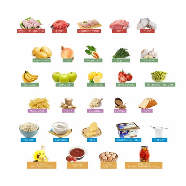 Набор продуктов, который мы использовали в меню, изображен на картинке.