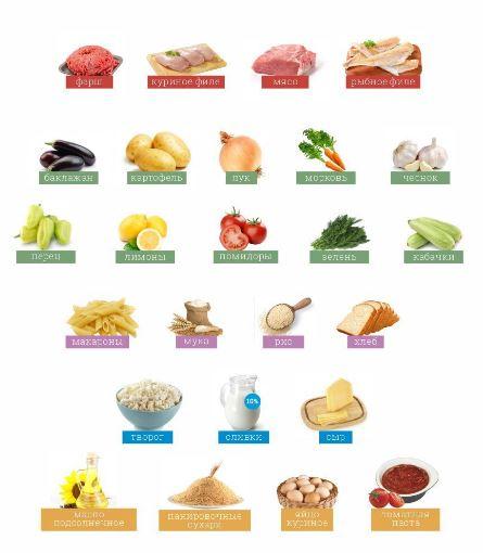 Продуктовые корзины для наших меню доступные, стоимость продуктов на неделю составляет 2500-2800 р. в зависимости от региона.
