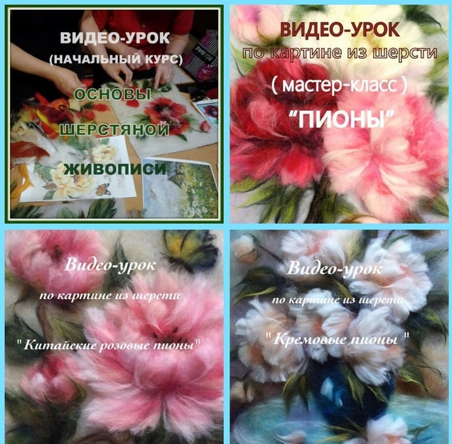 Войлок Видеокурс по картинам из шерсти Пионы (Марина Аскерова)