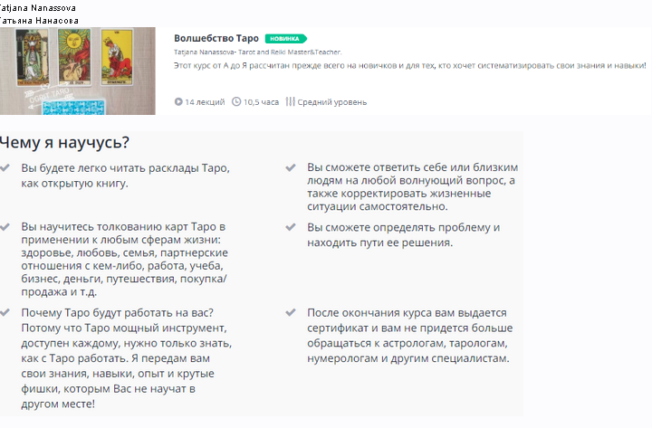 - Вам не нужно иметь навыки Таро, так как все знания от 'а до я' вы получите в течении курса.