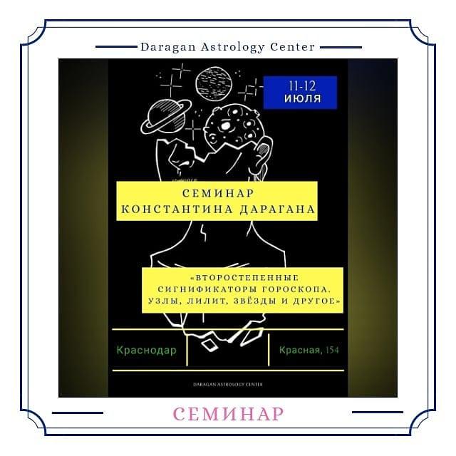 11-12 июля в Краснодаре состоится семинар по теме «Второстепенные сигнификаторы гороскопа. Узлы, Лилит, Звёзды и другое» Ведёт: Константин Дараган