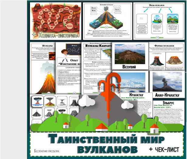 В комплекте Вы найдёте информацию про вулканы: