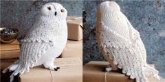 Сова вяжется преимущественно круговыми и короткими рядами, которые формируют область груди совы, затем петли поднимаются и вяжутся, чтобы связать ноги и голову. Верхняя часть крыльев вяжется лицевой гладью, а нижняя часть резинкой с рядом фестонов, выполненных по диагонали через нижние края. Ее крылья и хвостовые перья выходят за пределы тела, чтобы обеспечить равновесие, в то время как ноги поддерживают ее вес. Все детали набиваются в конце, а глаза с безопасным креплением и вышитый клюв добавляют детали к этой приятной копии преданного друга Гарри.