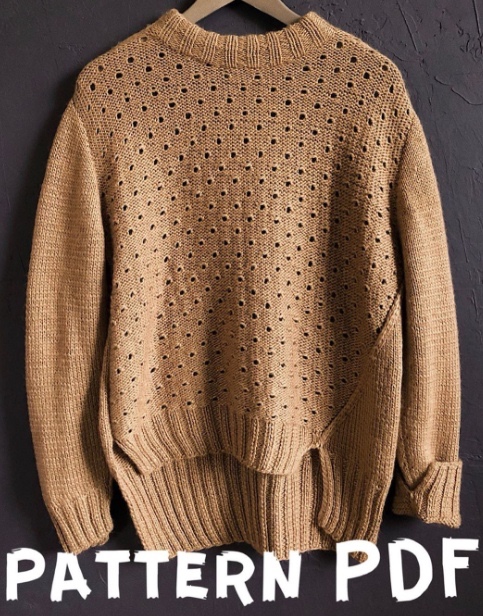 Если вы хотите выбрать другую пряжу, вам нужно попасть в указанную плотность, для чего рекомендую связать и отблокировать большой образец перед тем, как начать вязание свитера. Если плотность не совпадает, сделайте новый расчет, чтобы понимать какими будут отклонения от указанных размеров свитера.