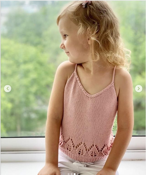 Ажурный узор 'Листья' начинается на талии но, за счёт лицевой глади после узора, можно легко удлинить или укоротить топ до нужной длины.